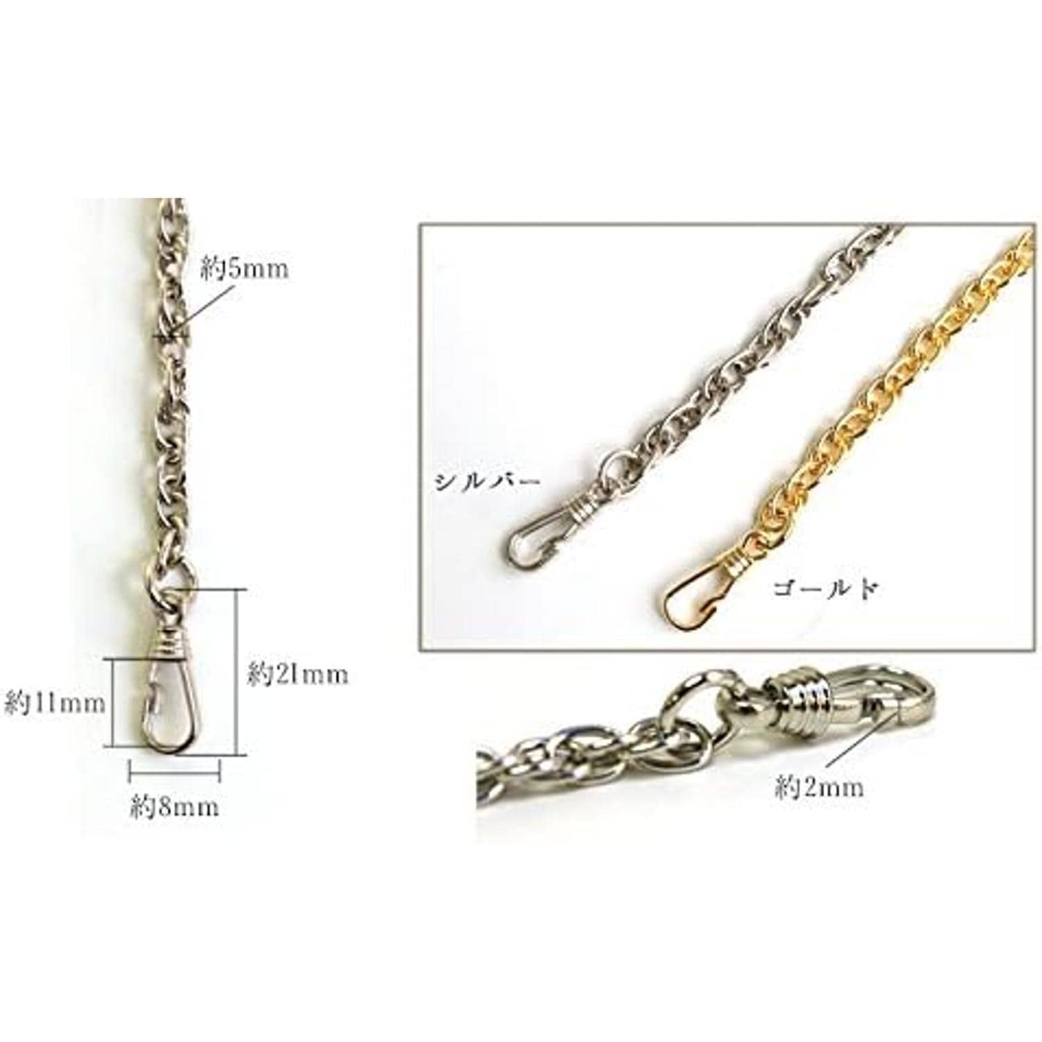 日本紐釦貿易 チェーンショルダー 120cm シルバー TYC3101-S (ご注文単位1本)【直送品】