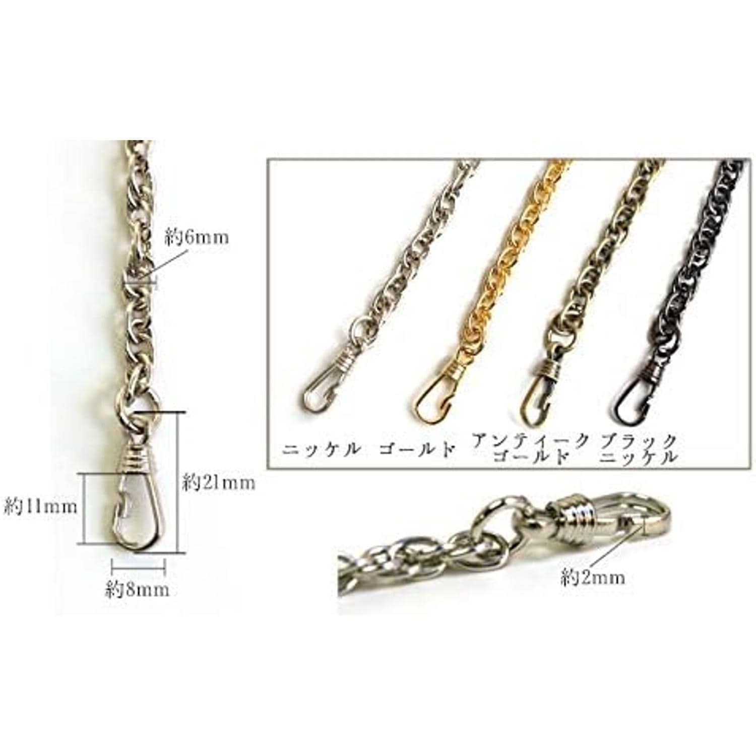 日本紐釦貿易 バッグ用チェーン 90cm ニッケル R903-N (ご注文単位1本)【直送品】