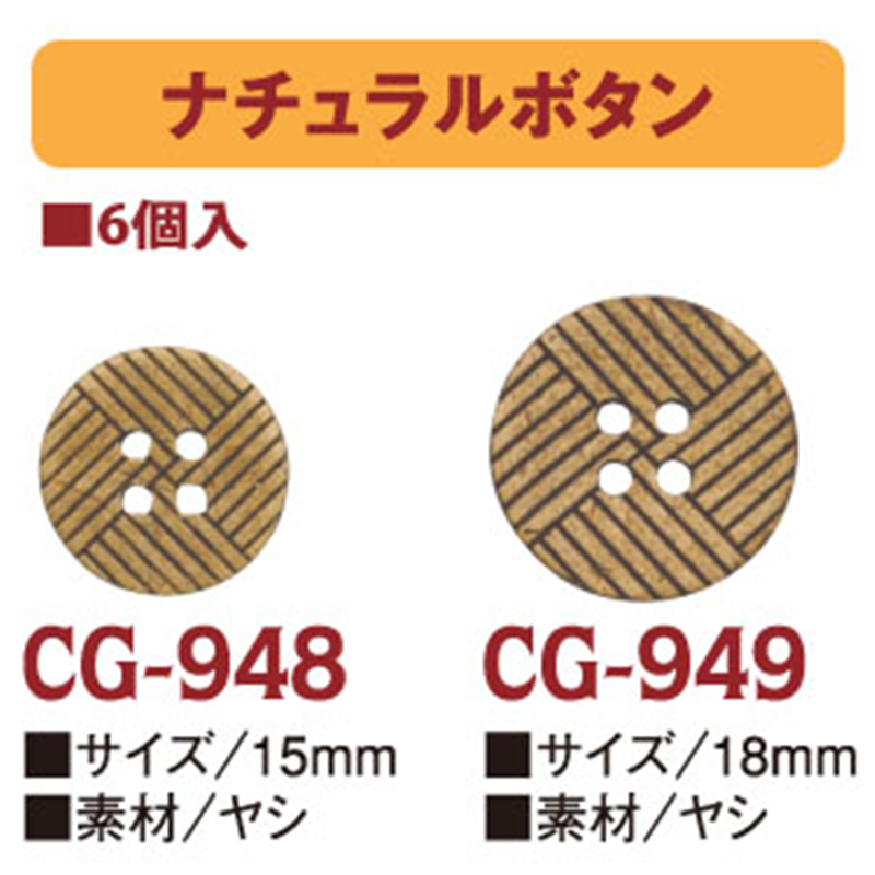 日本紐釦貿易(Nippon Chuko) ナチュラルボタン 15mm 6個 CG948 1袋(ご注文単位1袋)【直送品】
