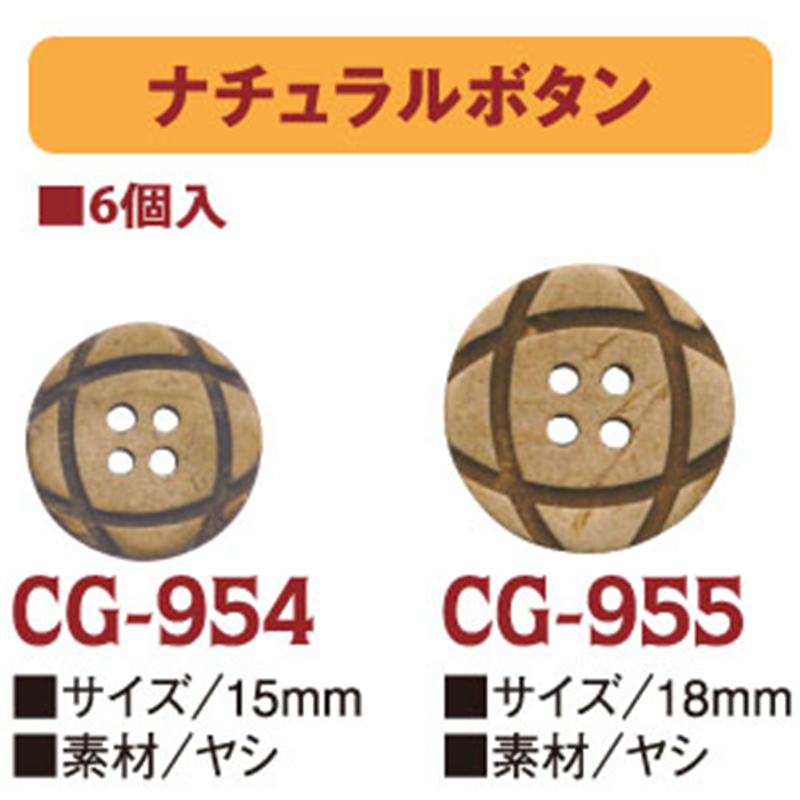 日本紐釦貿易(Nippon Chuko) ナチュラルボタン 15mm 6個 CG954 1袋(ご注文単位1袋)【直送品】