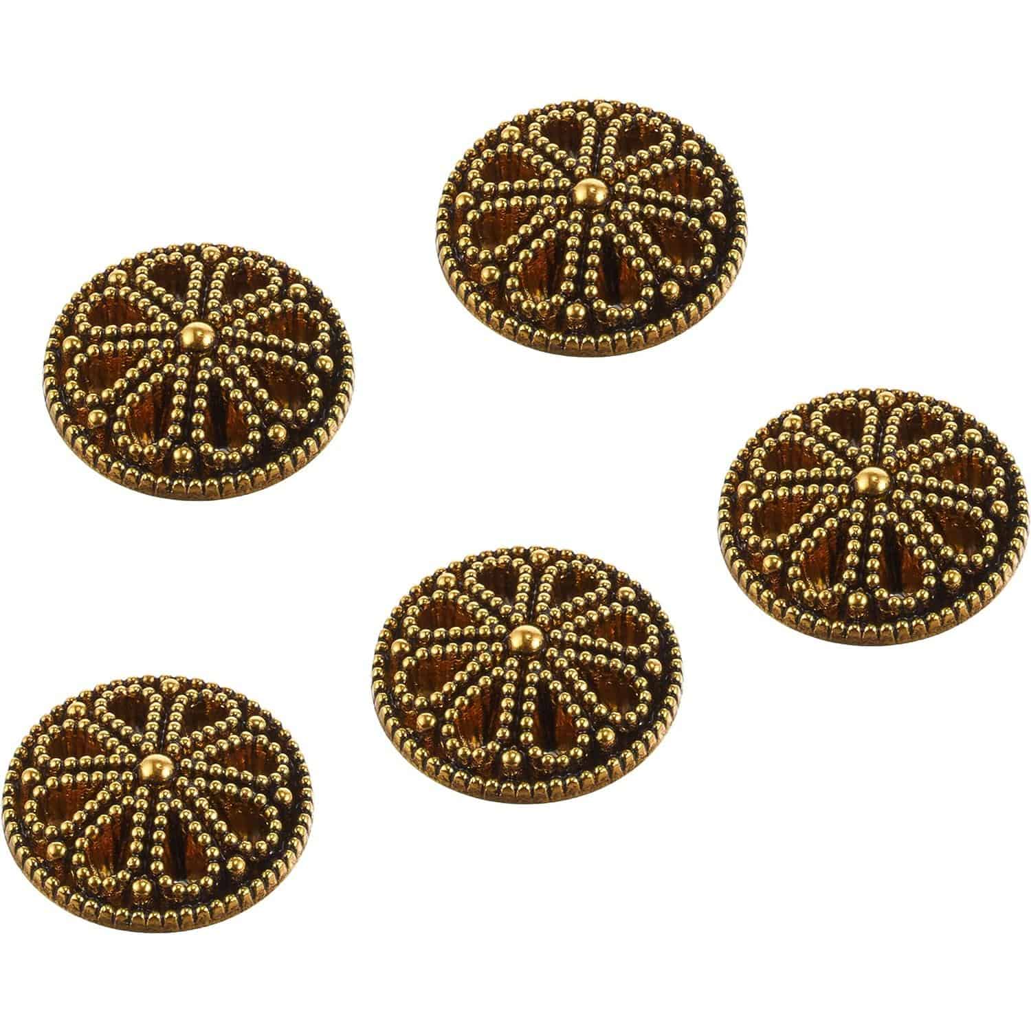 日本紐釦貿易 アンティーク調デザインボタン ゴールド 直径18mm 5個入 CG1558 (ご注文単位1束)【直送品】