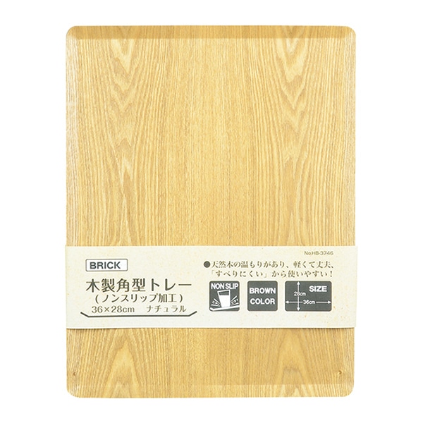 パール金属 ブリック 木製角型トレー ノンスリップ加工 36×28cm ナチュラル HB-3746 1個(ご注文単位24個)【直送品】