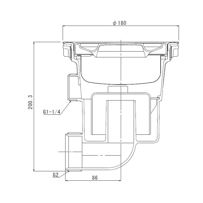 スギコ産業 ECφ180 排水トラップ オーバーフロー付 排水プレート付 TA4772-TO-299NH 1個(ご注文単位1個)【直送品】