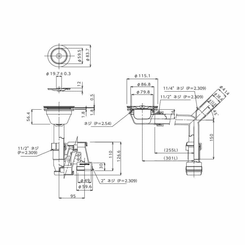 排水口部:φ115×H56.4mm