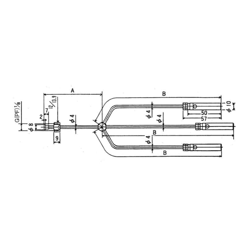 ガス供給パイブ部:150mm/三又以降の長さ:350mm
