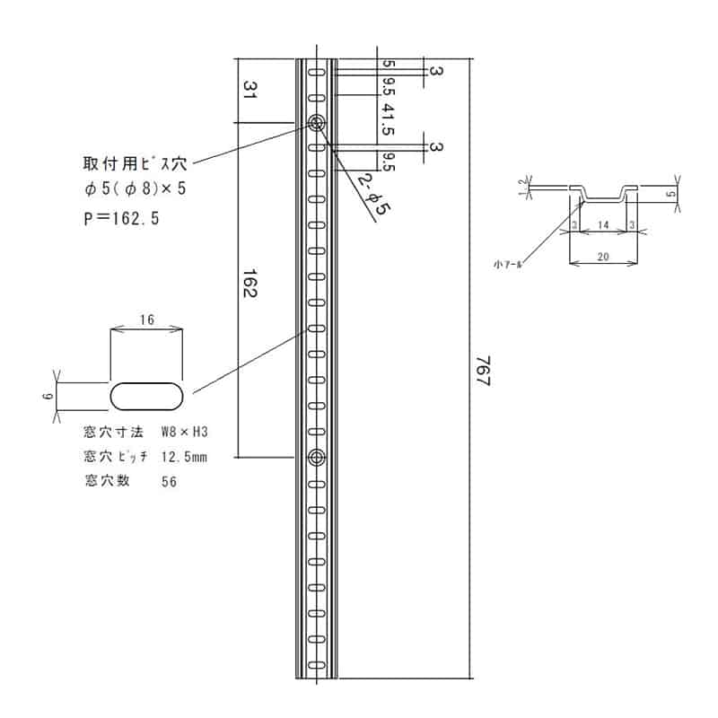 スギコ産業 棚柱 TO-190FL TA4515-TO-190FL 1個(ご注文単位1個)【直送品】