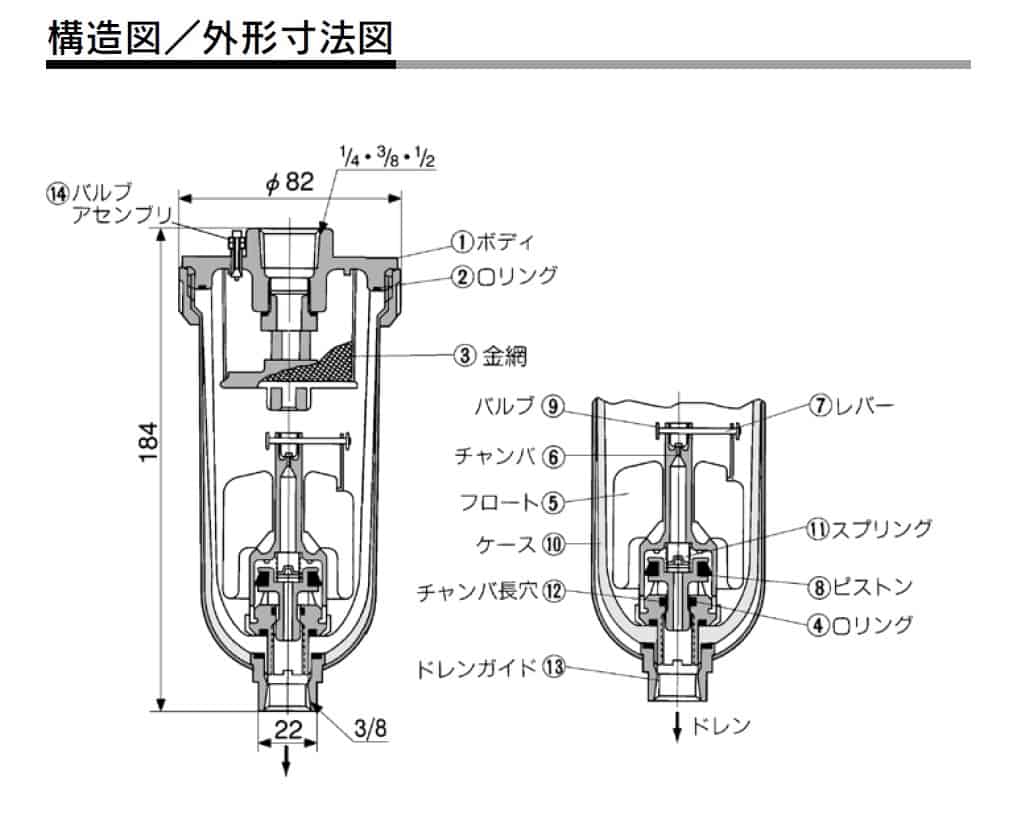 エスコ EA153SD-33 Rc 3/8オートドレントラップ 1個 (ご注文単位1個)【直送品】