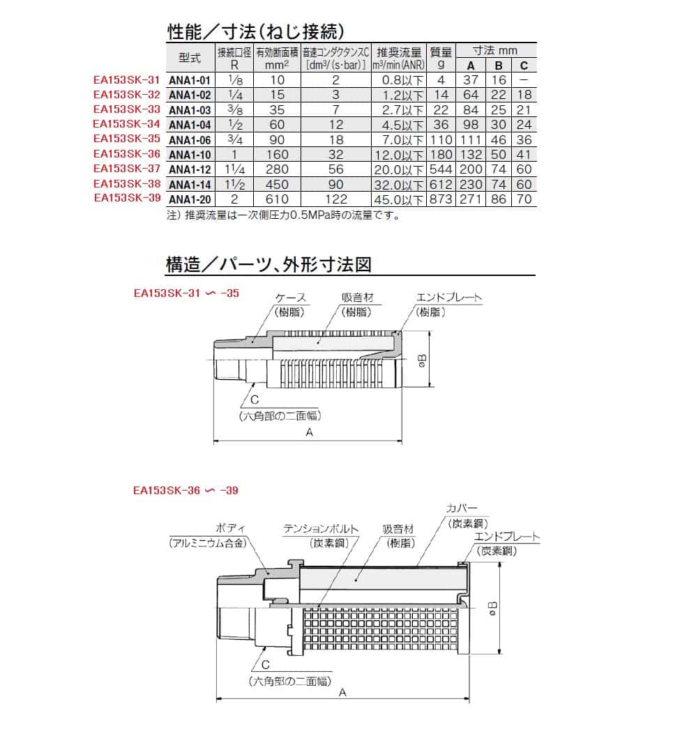 エスコ EA153SK-36 R 1 サイレンサー(高消音) 1個 (ご注文単位1個)【直送品】