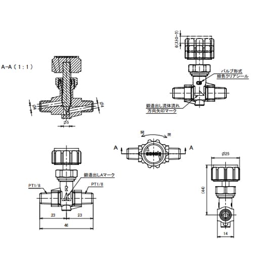 エスコ EA426CS-11A R 1/8xR 1/8ニードルバルブ 1個 (ご注文単位1個)【直送品】