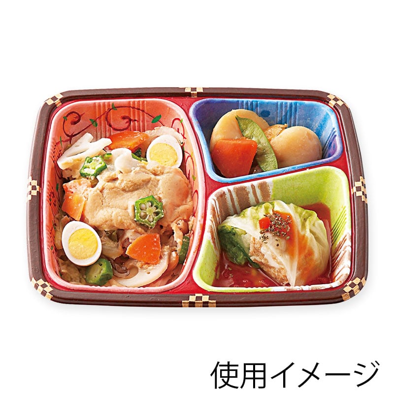ワンウェイ 耐熱お弁当容器 T-24 三彩(蓋付・50セット入) 1袋(ご注文単位1袋)【直送品】