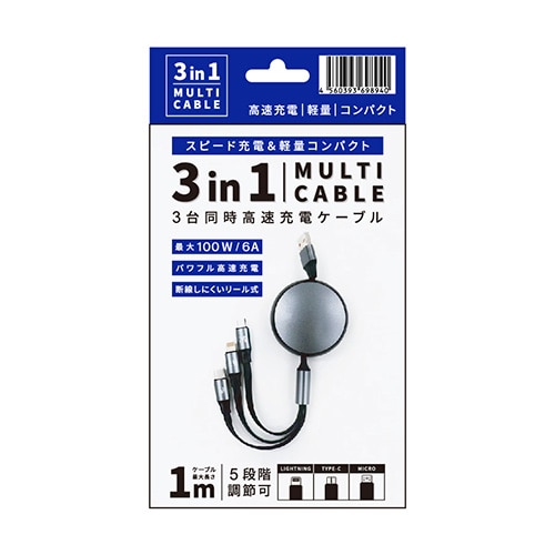 ㈱三和 マルチ充電ケーブル 3in1 OH-100 1個(ご注文単位1個)【直送品】