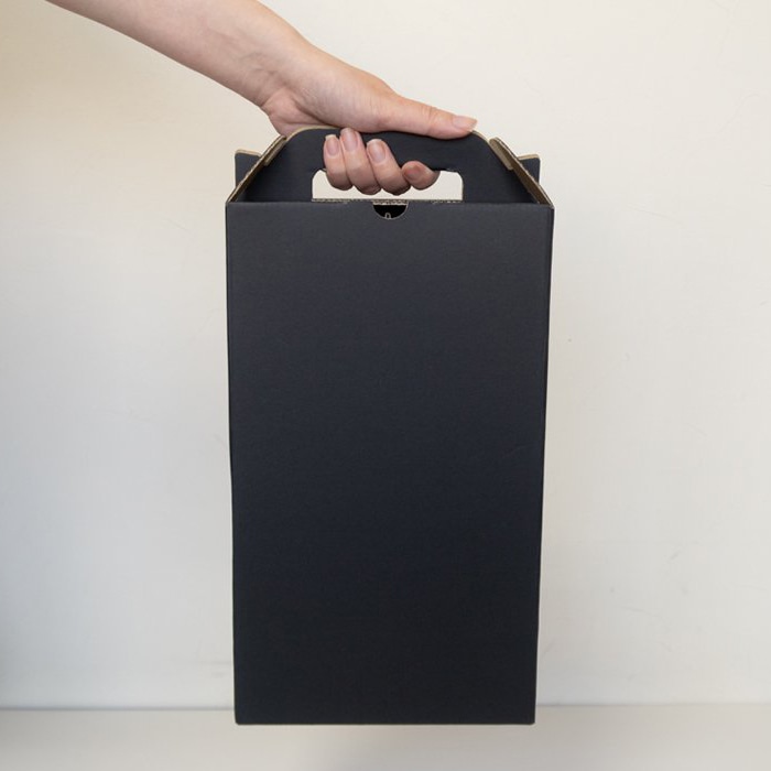 底貼ワンタッチ仕切り一体型の2本入ボトルケース。4合瓶(720ml)やフルボトル(750ml)用にご使用頂けます。瓶サイズ91mm×91mm×310mm迄対応可能なレギュラー箱。手提式の箱ですのでそのままキャリー簡易箱として、更に手提げをたたんでも使用できます。その場合、包装が可能になり進物用としても使用できます。又、仕切と箱が一体の構造となっているので、仕切の不足や仕切のセットの手間が解消されます。手提式の箱ですのでそのままキャリー簡易箱として使用できます。仕切と箱が一体の構造となっているので、仕切の不足や仕切のセットの手間が解消されます。フラップの穴に瓶のネックを通す事で瓶の揺れを軽減します。手提げをたたんでも使用ができます。その場合、包装が可能になり進物用としても使用できます。用途に合わせて組み立て方を変えてご使用ください。●1箱あたりの重量:147g