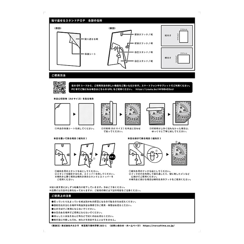 ナルシマ 貼り直せるスタンドPOP ハリスタ A4 ブラック 2枚 HSB-A4-2 1袋(ご注文単位10袋)【直送品】