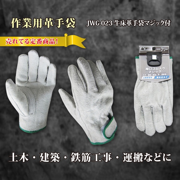 ジェイワークスプランニング 牛床革手袋 マジック付 L JWG-023 1組(ご注文単位10組)【直送品】