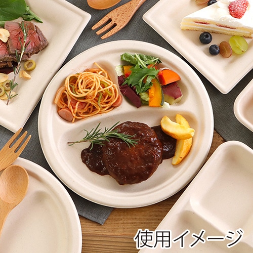 チェーンストリーム 紙皿 バガス三つ仕切りプレート 23cm 1箱(ご注文単位1箱)【直送品】