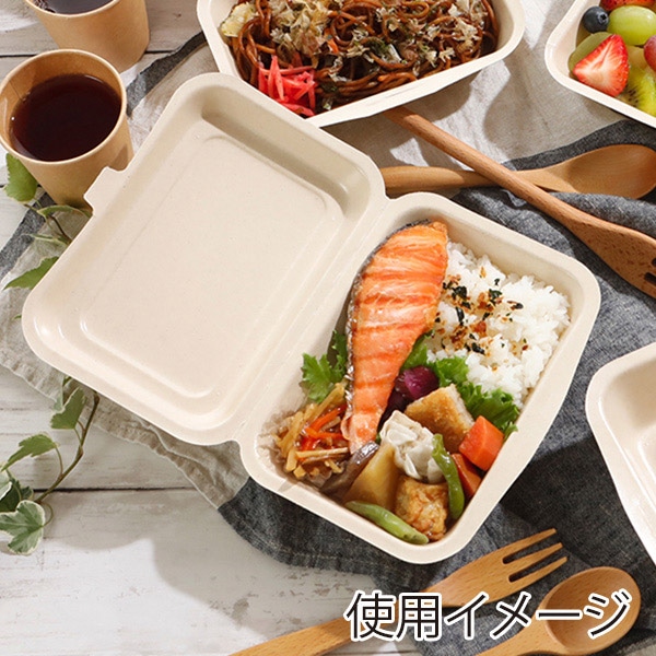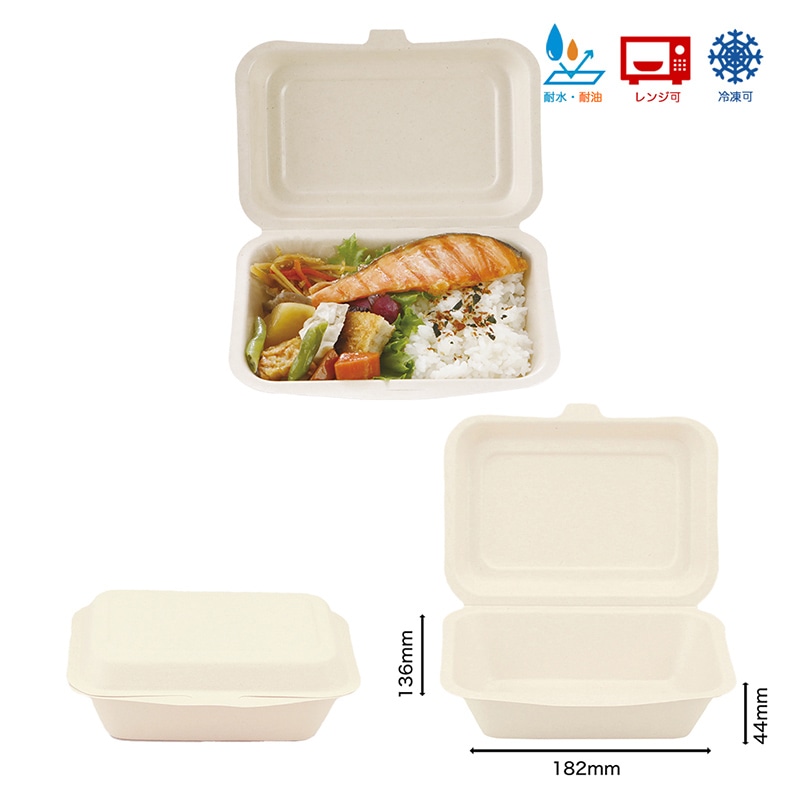 チェーンストリーム 弁当容器 バガスランチボックス ラミ加工 600ml 1箱(ご注文単位1箱)【直送品】