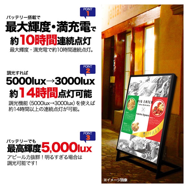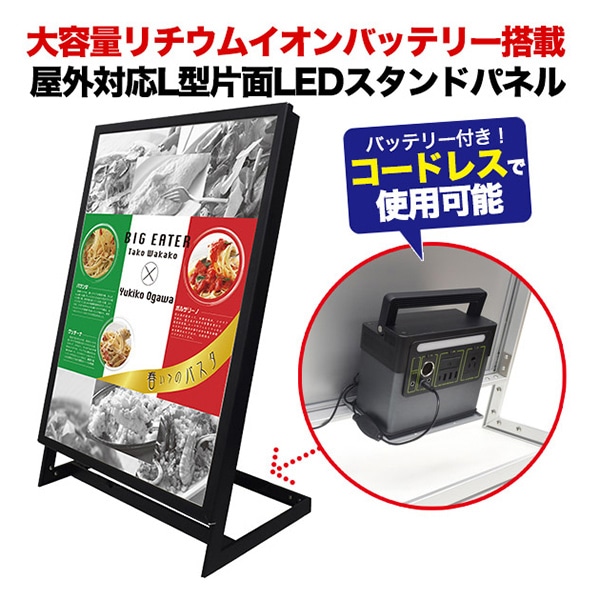 プラタ LEDスタンドパネル L型 片面 A4 ブラック リチウムバッテリー搭載 lb085 1セット(ご注文単位1セット)【直送品】