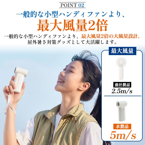 プラタ ポケットハンディファン 風量3段階 ホワイト fan015 1個(ご注文単位1個)【直送品】