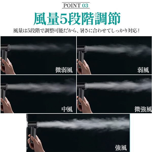 プラタ ポケットハンディファン 風量5段階 ブラック fan018 1個(ご注文単位1個)【直送品】