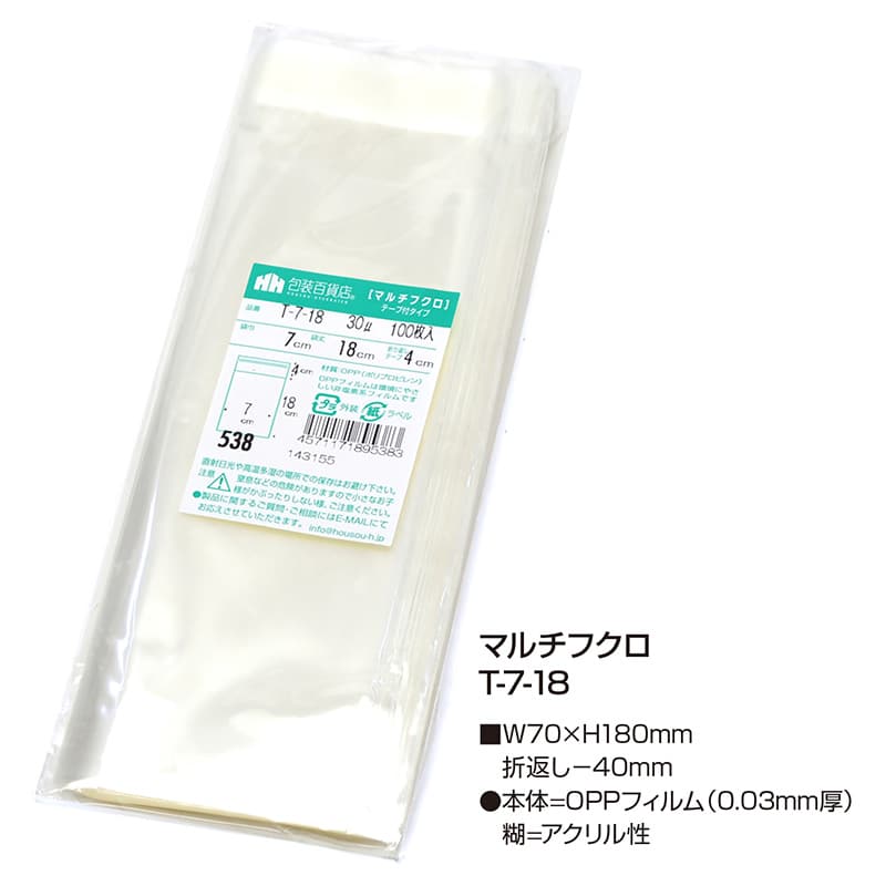 三宝 OPP袋 マルチフクロ テープ付 T-7-18 1冊(ご注文単位1冊)【直送品】