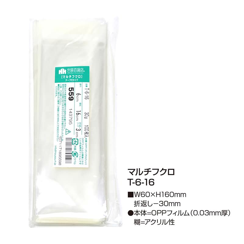 三宝 OPP袋 マルチフクロ テープ付 T-6-16 1冊(ご注文単位1冊)【直送品】