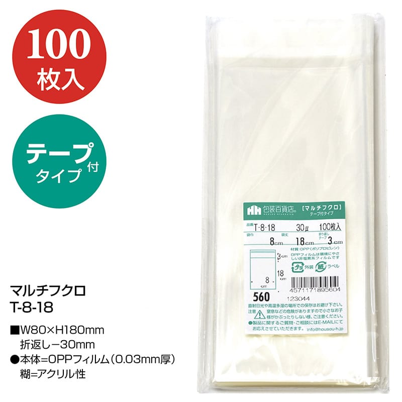 三宝 OPP袋 マルチフクロ テープ付 T-8-18 1冊(ご注文単位1冊)【直送品】