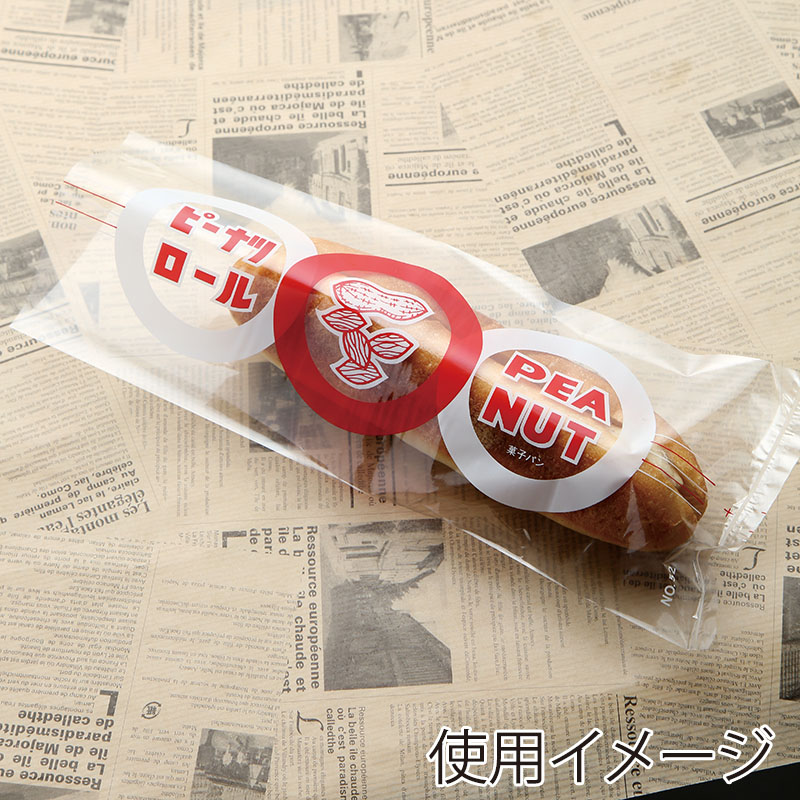 透明素材に「ピーナツロール」の文字とイラストが入った平袋タイプのパン袋です。●入数:100枚