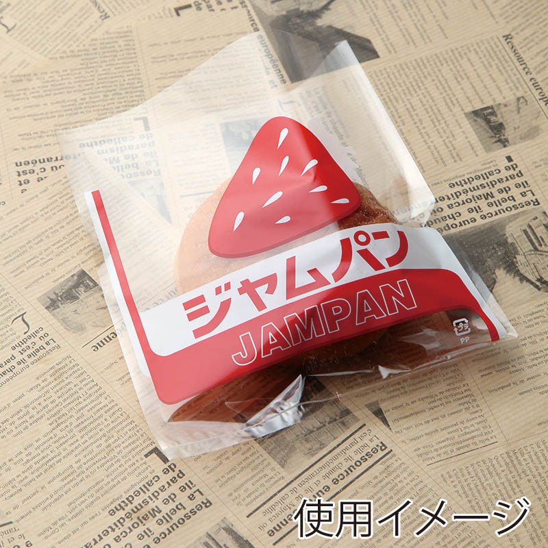 透明素材に「ジャムパン」の文字とイラストが入った平袋タイプのパン袋です。●入数:100枚