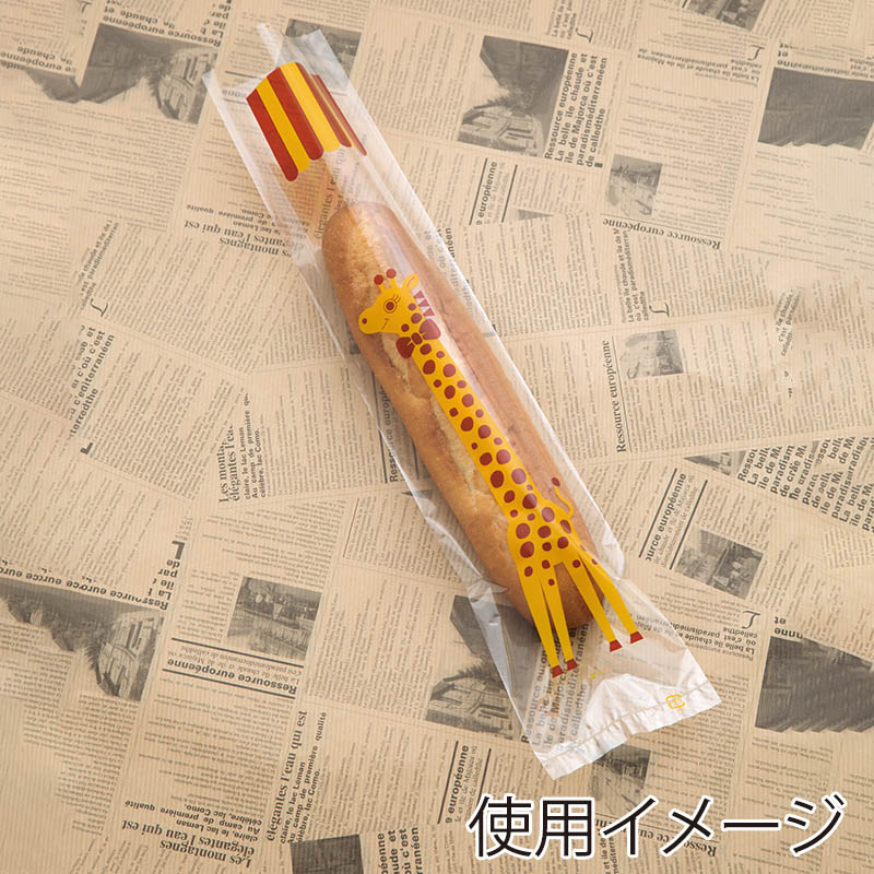 透明素材にキリンのイラストが入った平袋タイプのパン袋です。●入数:100枚