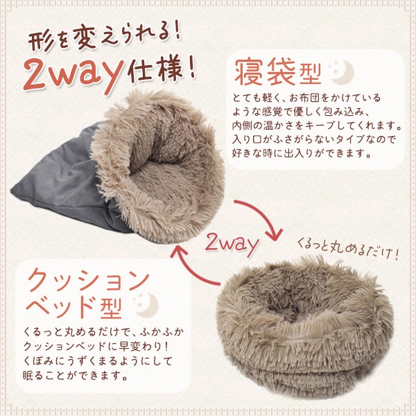 プラタ 小型犬・猫向け寝袋 2Way Sサイズ ブラウン pt-p002sbr 1個(ご注文単位1個)【直送品】