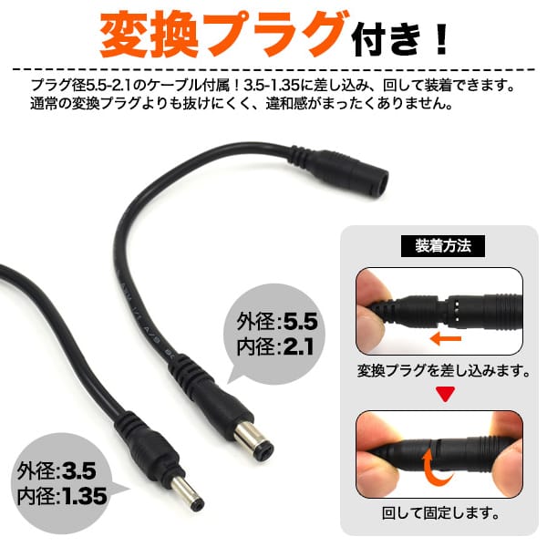 プラタ 12V3A 汎用スイッチングACアダプター 5.5-2.1変換ケーブル付属 ac12v3a55-21 1個(ご注文単位1個)【直送品】