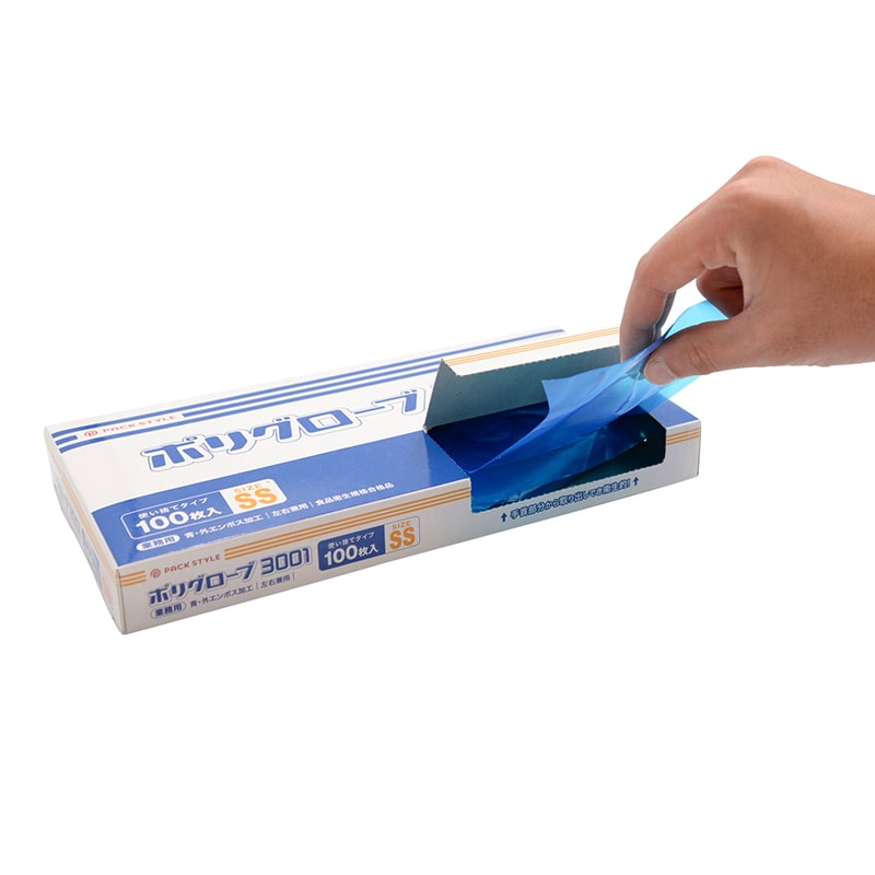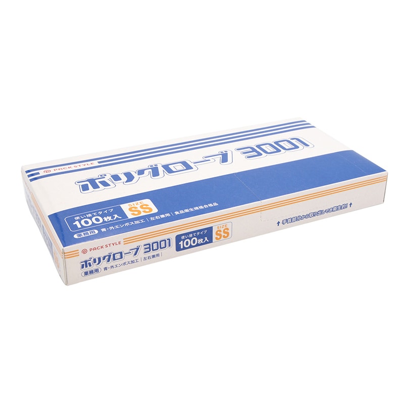 使い捨て手袋 ポリグローブ3001 SS 青 100枚/箱(ご注文単位60箱)【直送品】