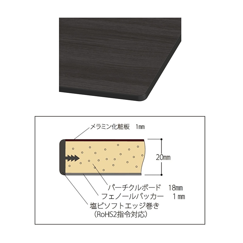 - 天板:メラミン化粧板/脚部:スチール(粉体塗装)