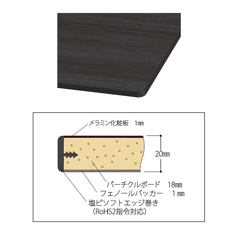 - 天板:メラミン化粧板/脚部:スチール(粉体塗装)