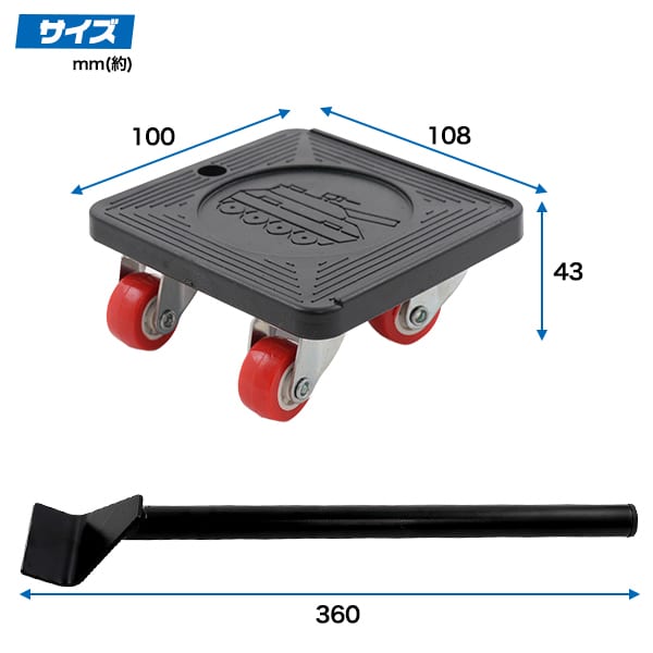 台車:100×108×43mm/リフター:360mm