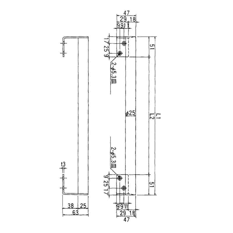 スギコ産業 ステンレス取手 400mm SA1336-TO-98-400 1個(ご注文単位1個)【直送品】