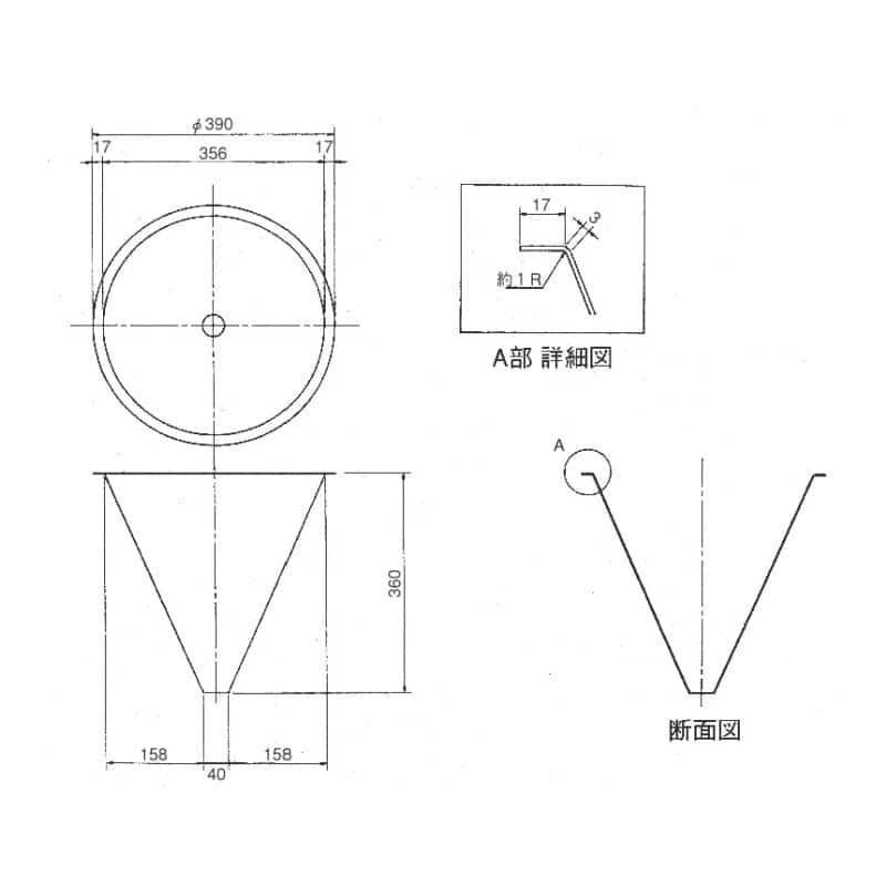 スギコ産業 テーパー型フランジ付ホッパー SA0459-RWOS-20 1個(ご注文単位1個)【直送品】