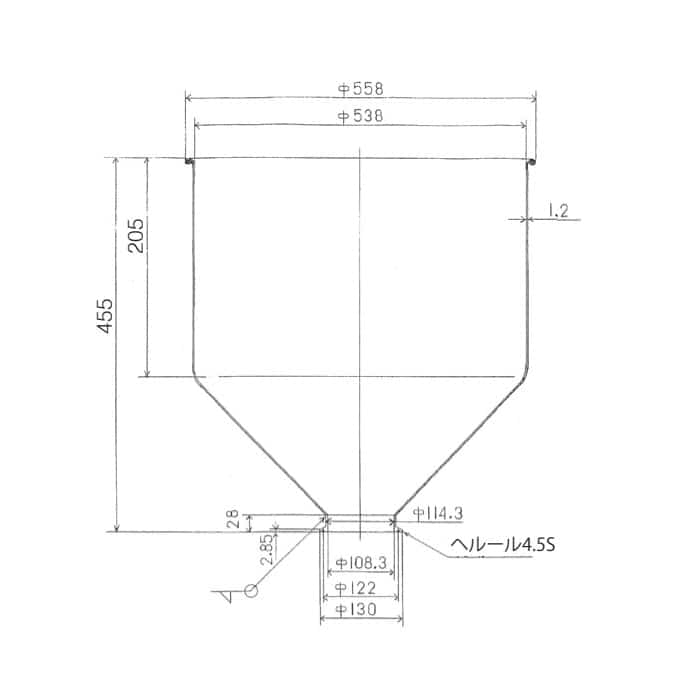 スギコ産業 ステンレスホッパー ヘルール4.5S付 65L SA1343-RWOS-50H 1個(ご注文単位1個)【直送品】