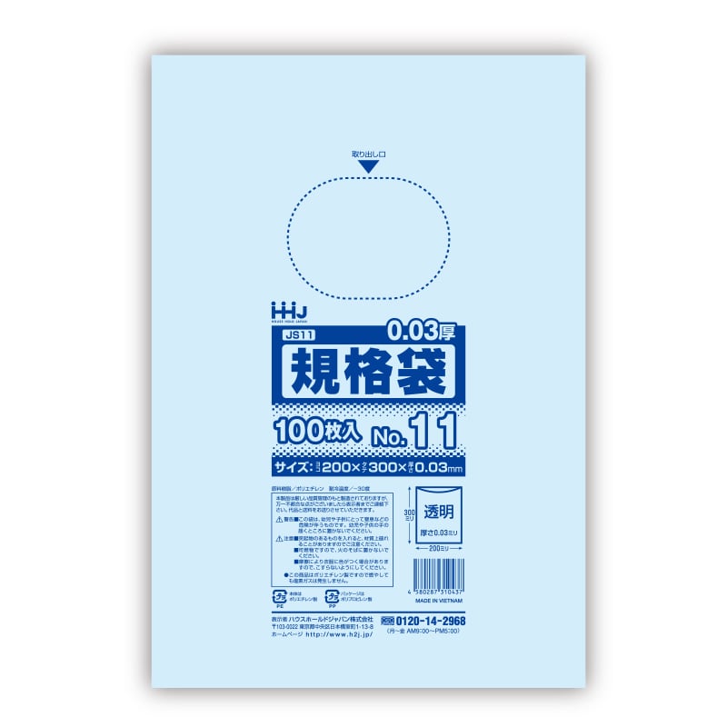 ハウスホールドジャパン ポリ規格袋 0.03mm厚 11号 JS11 透明 1冊(ご注文単位60冊)【直送品】