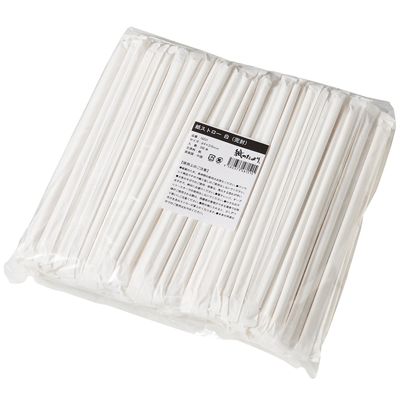 神堂 紙ストロー 完封 16231 白 200本/パック(ご注文単位1パック)【直送品】