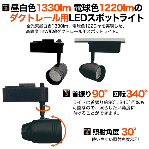 プラタ 配線ダクト用 一体型LEDスポット 12W 電球色 ブラック 51WBK-LED 1台(ご注文単位1台)【直送品】