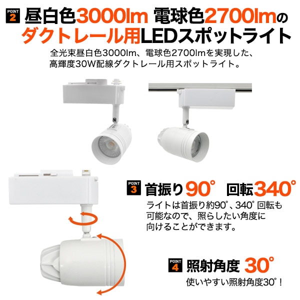プラタ 配線ダクト用 LEDスポット 30W 電球色 ホワイト 52W-LED30 1台(ご注文単位1台)【直送品】