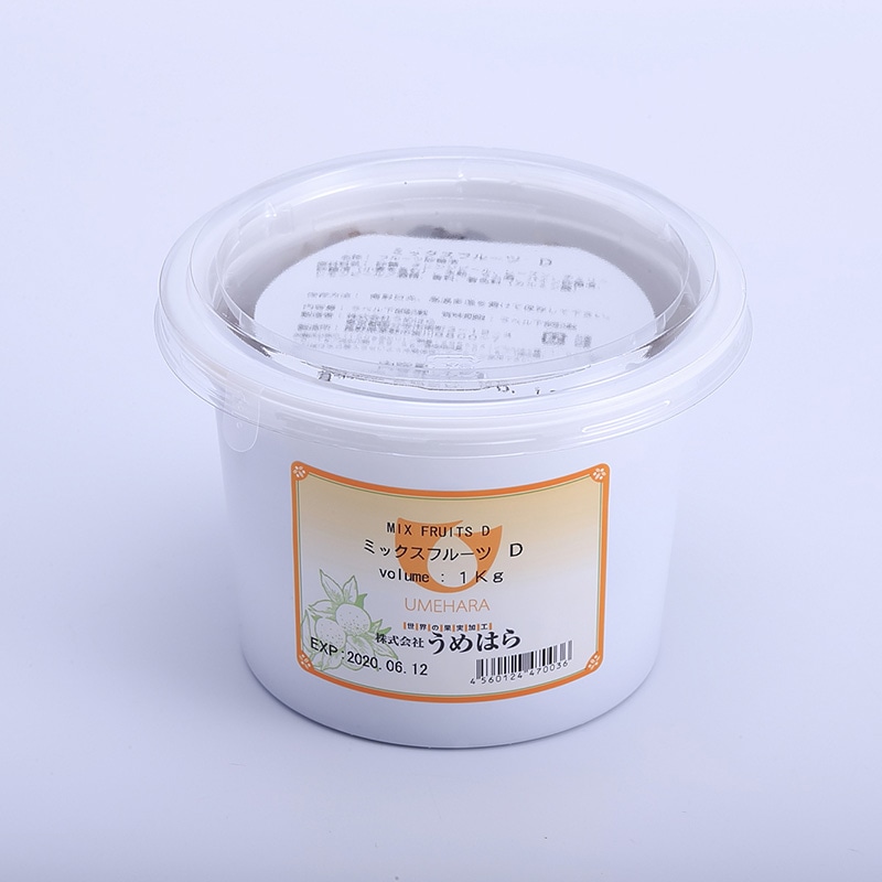 オレンジ、レーズン、チェリー(1/2カット)、レモン、パインの漬け込みです。原産国:日本 冷暗所保管。開封後は冷蔵保管し、早めにご使用ください。原材料名:砂糖・オレンジピール・レーズン・チェリー・ラム酒・水飴・レモンピール・パイン・香料・着色料(カルミン酸)。エネルギー(100gあたり)→298kcal●内容量:1kg
