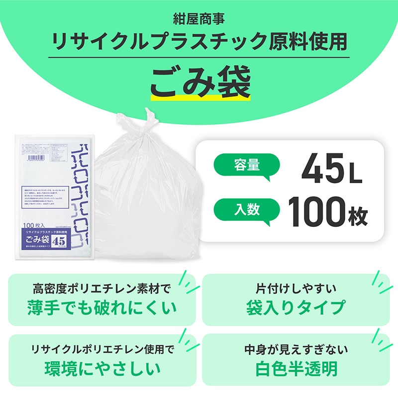 紺屋商事 リサイクル原料使用ごみ袋 乳白半透明 45L 100枚入 01230450 1冊(ご注文単位3冊)【直送品】