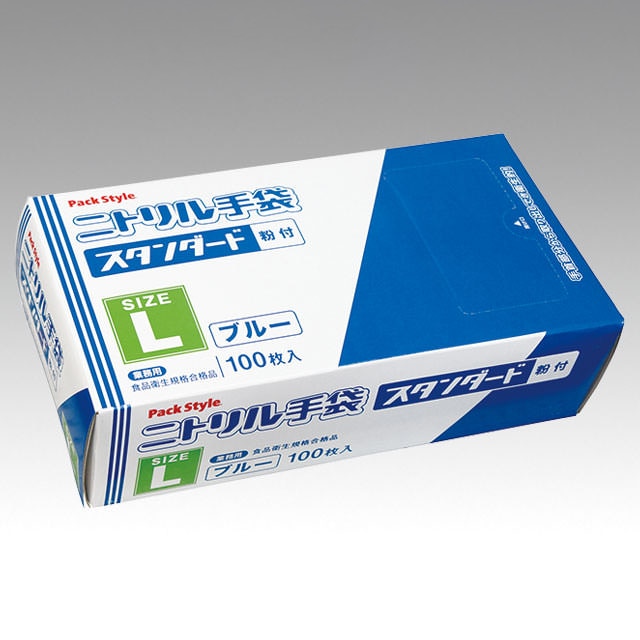 PS 使い捨て手袋 ニトリルスタンダード 粉付 L 青 100枚/箱(ご注文単位30箱)【直送品】