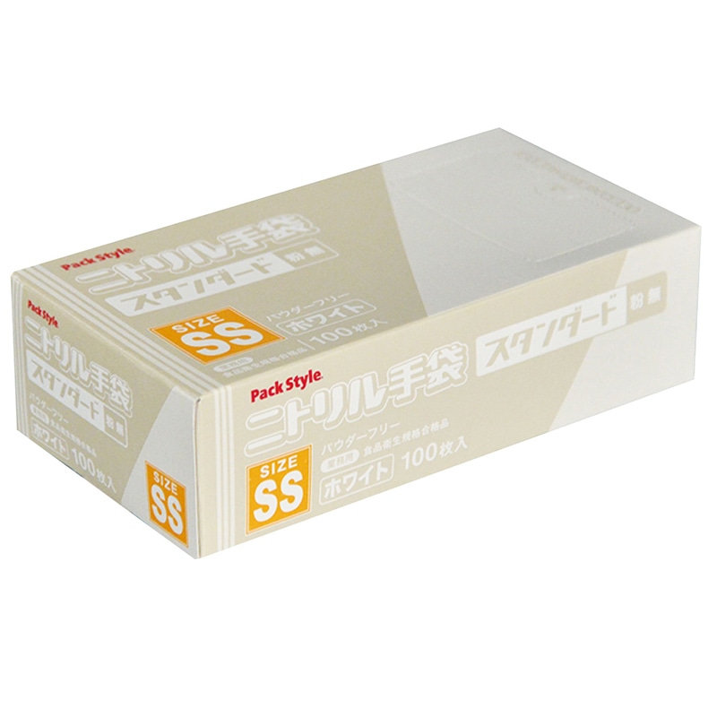 使い捨て手袋 ニトリルスタンダード 粉無 SS 白 100枚/箱(ご注文単位30箱)【直送品】