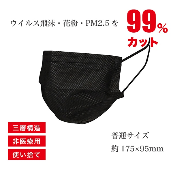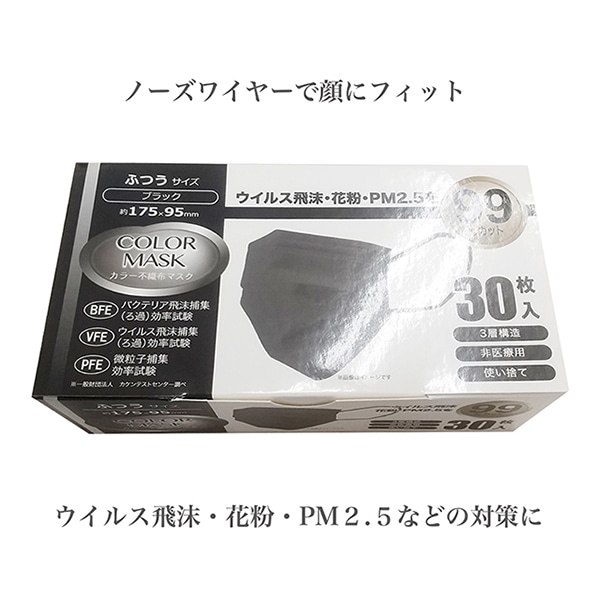 ジェイワークスプランニング カラー不織布マスク 三層タイプ ふつうサイズ ブラック 30枚入 JWP-578 1箱(ご注文単位96箱)【直送品】