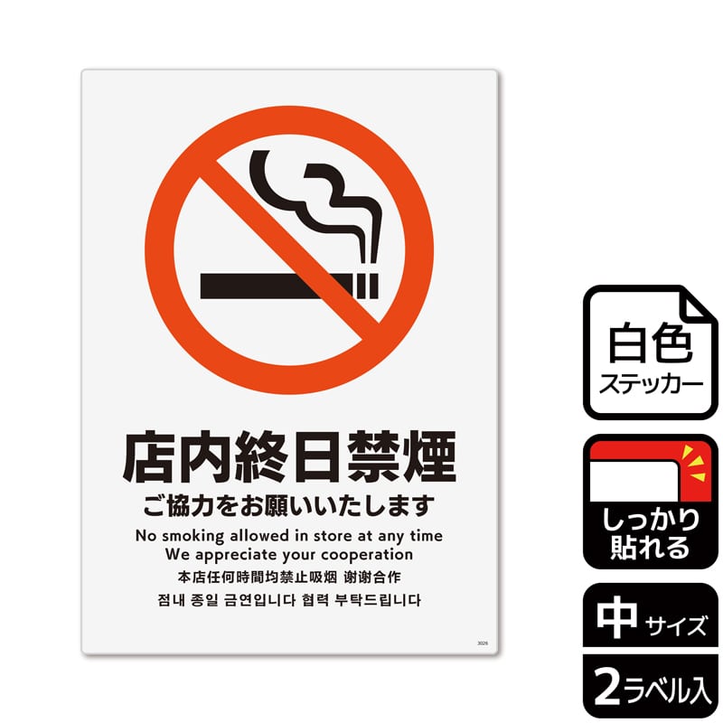 (株)KALBAS ホワイトフィルムステッカー 強粘着 タテ中 店内終日禁煙 ご協力をお願いいたします KFK3026 1パック(ご注文単位1パック)【直送品】