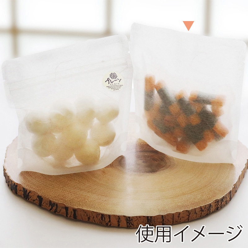 食べきりサイズのお菓子にぴったりなスタンドパックです。チャックなしタイプ。●乾燥剤使用可●入数:100枚