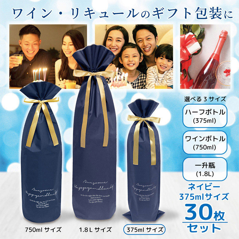エスパック 梨地リキュールギフト袋 ハーフボトル用 ネイビー 30枚/袋(ご注文単位1袋)【直送品】